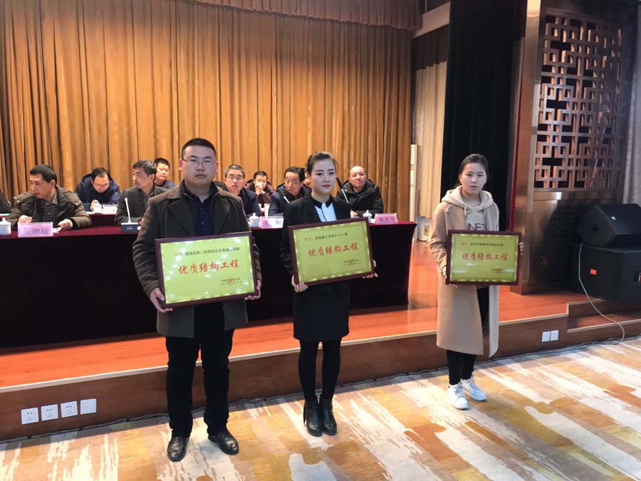 會議宣布了2017年度渭南市建筑業(yè)各類獎項的評選結(jié)果,我公司榮獲“先進企業(yè)”獎,劉總經(jīng)理榮獲市“優(yōu)秀企業(yè)經(jīng)理”,公司承建的秦川·華府5#、6#樓項目被評為“優(yōu)質(zhì)結(jié)構(gòu)工程”,項目經(jīng)理王星顯被評為市“優(yōu)秀項目經(jīng)理”,項目部總工程師梁紅、質(zhì)量員賀錦嬋、安全員鈔軍勝,分別被評為市“優(yōu)秀總工程師”、市“優(yōu)秀質(zhì)量員”、市“優(yōu)秀安全員”。