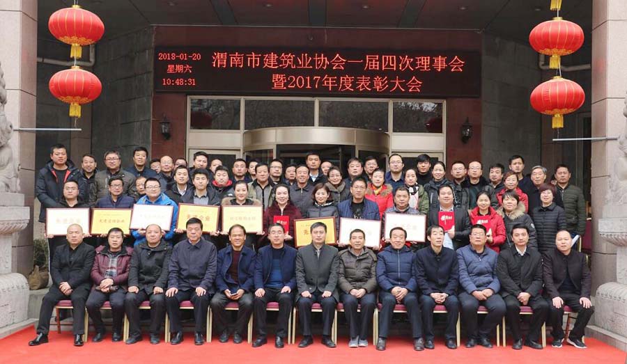 2018年1月20日上午,渭南市建筑業(yè)協(xié)會一屆四次理事會暨2017年度表彰大會在渭南祥龍賓館4樓多功能廳召開,此次會議總結(jié)匯報了渭南市建筑業(yè)協(xié)會2017年工作及2018年工作要點,并表彰了渭南市建筑業(yè)2017年度優(yōu)質(zhì)結(jié)構(gòu)工程、五優(yōu)一先進及先進監(jiān)理企業(yè)等榮譽獲獎?wù)摺?/span>